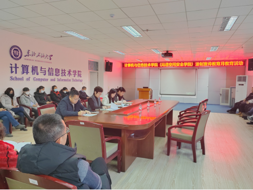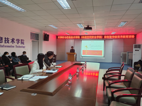 为深入学习贯彻习近平法治思想,增强广大师生法治意识和法治思维,12月13日,我院在第一教学楼D座305会议室组织召开法制宣传教育月活动。党委书记任艳秋,党委副书记胡畔,副院长张强、刘志刚及全体教师参加会议。会议由党委书记任艳秋主持。