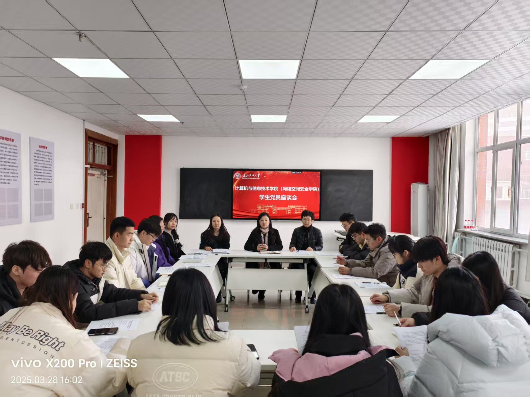 2025年3月28日,学院党委书记任艳秋在一教D座302会议室主持召开2025年大学生党员座谈会。学院党委副书记胡畔,大学生第二党支部书记李婉婷,学生辅导员方希锐、王瑜及大学生第二党支部全体学生党员参加了座谈会。