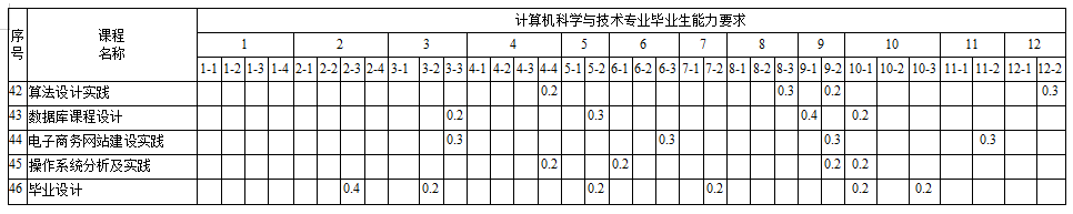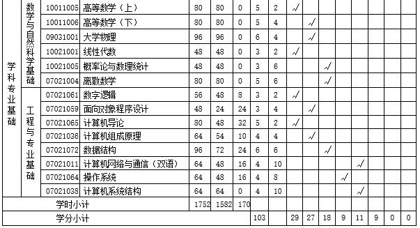 八、计算机科学与技术专业必修课程设置