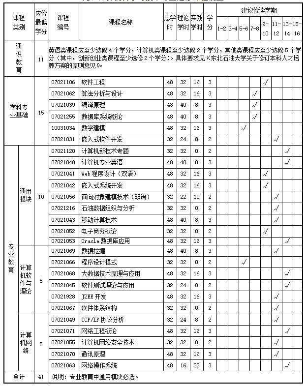 九、计算机科学与技术专业选修课程设置