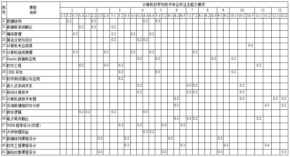 本专业毕业要求对培养目标的支撑关系矩阵如表所示。