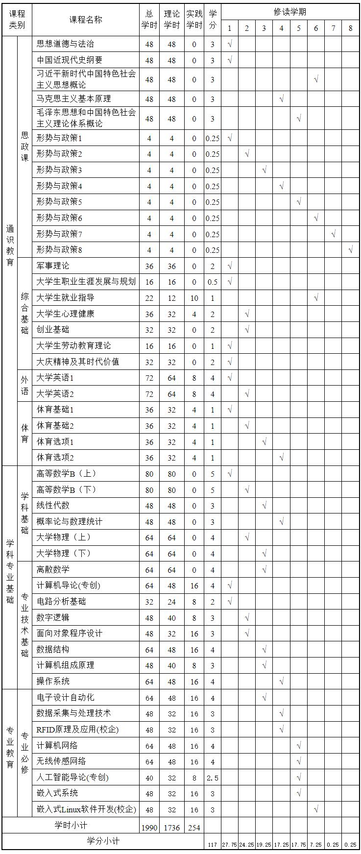 十一、物联网工程专业必修课程设置