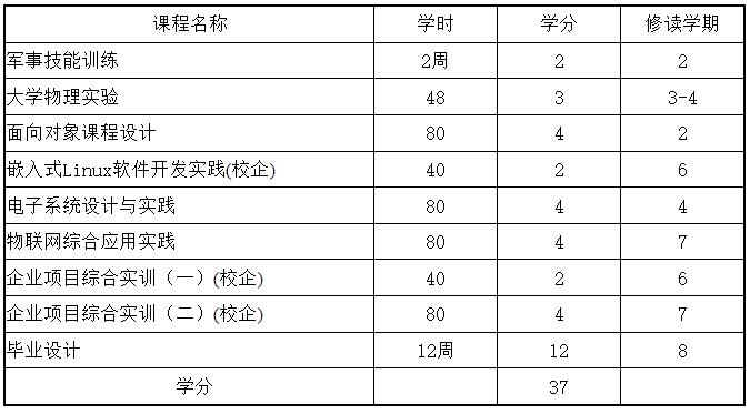 十四、物联网工程专业实践教学环节设置