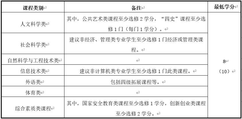 1.建议学生文理互选,在不同类别的通识选修课中完成修读。所有学生在修业年限内应至少取得8个通识教育选修课程学分。
