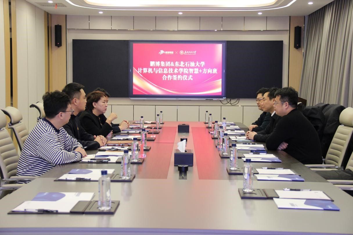 座谈会上,鹏博集团副总经理武秀英介绍了集团的发展历程。近年来,企业深耕龙江数字城市建设,在智慧政务、智慧交通、智慧水务、智慧农业、智慧教育、智慧党建等智慧生态各领域发展迅速,成为东北地区行业互联网开发领域的“生力军”。她希望两家单位深度融合,在产教融合方向深入合作,共同推进“智慧+”方向班的建设,为学生提供企业项目实习实训的同时,也能为鹏博集团输送更多的优秀人才,实现企业与学院的共赢。