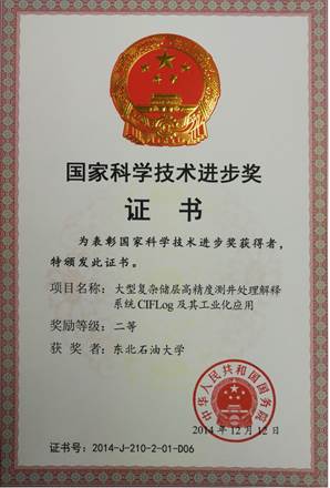 [1]大型复杂储层高精度测井处理解释系统CIFLog及其工业化应用,国家科技进步二等奖(集体),2014.12;