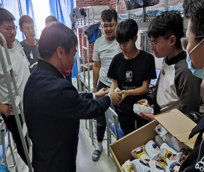 2021年9月19日上午,太阳成集团tyc7111党委书记万毅和副院长田枫为2021级新生送去了中秋关怀。