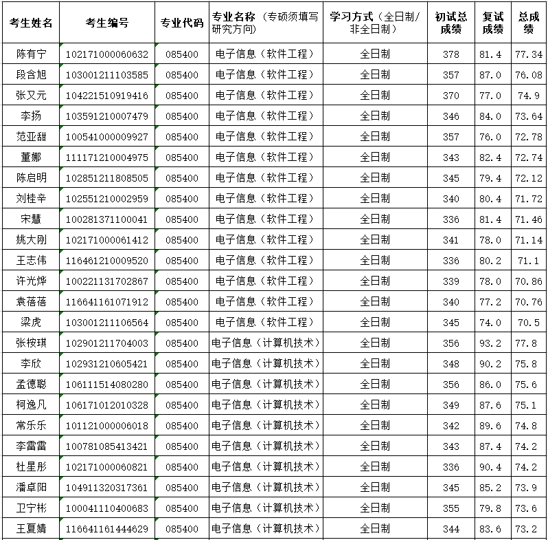 第三批次调剂复试成绩
