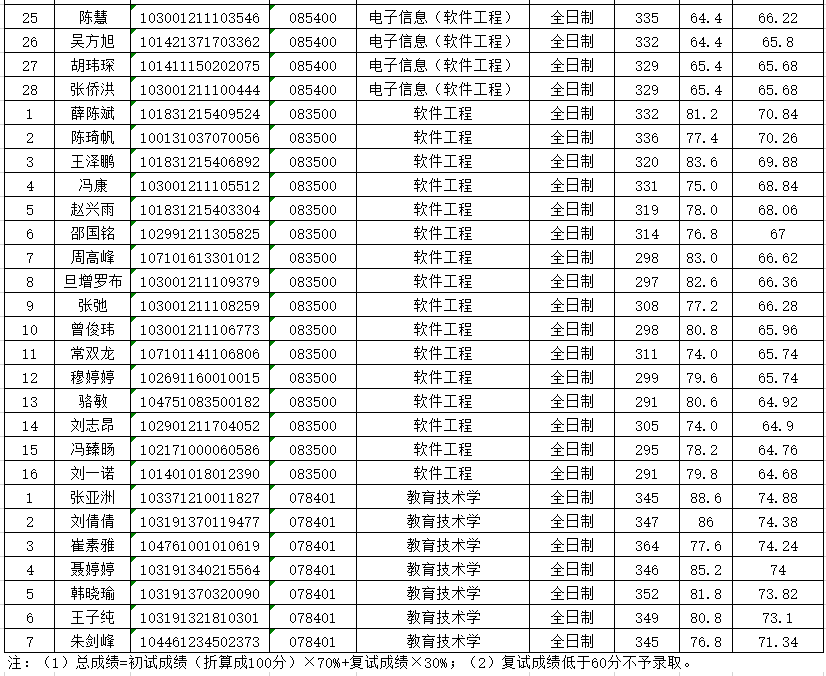 第一批次调剂复试成绩