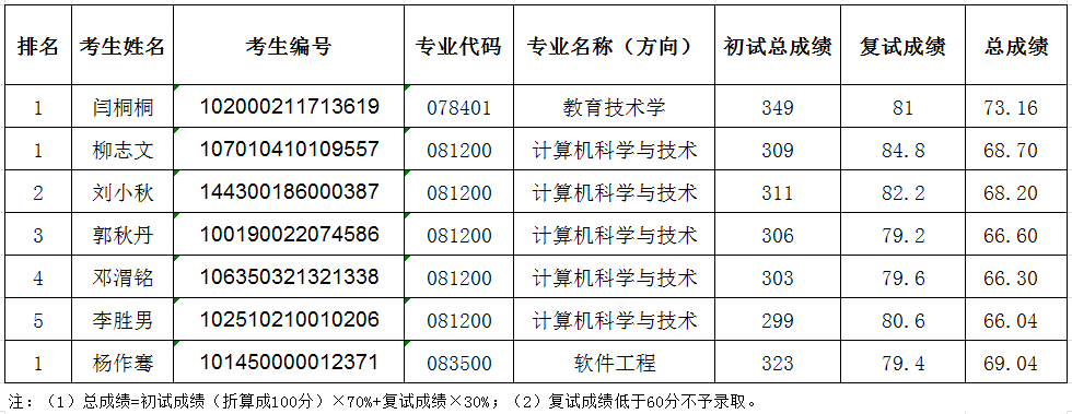第二批次研究生复试成绩