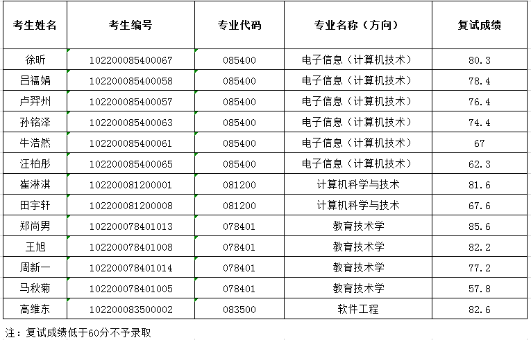 太阳成集团tyc71112020一志愿硕士研究生复试成绩
