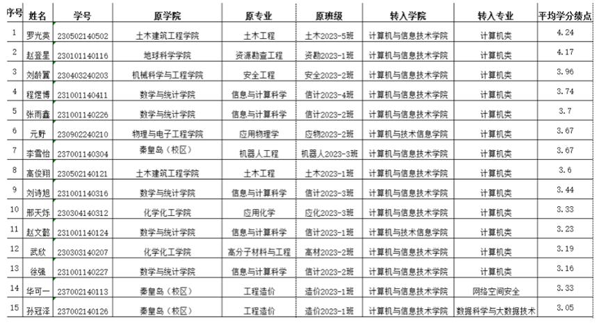 根据《tyc7111cc太阳成集团转专业与转学实施办法》(东油校发〔2023〕139号)文件规定,经学生本人申请,学院转专业工作小组审核通过,符合转专业要求学生名单公示如下: