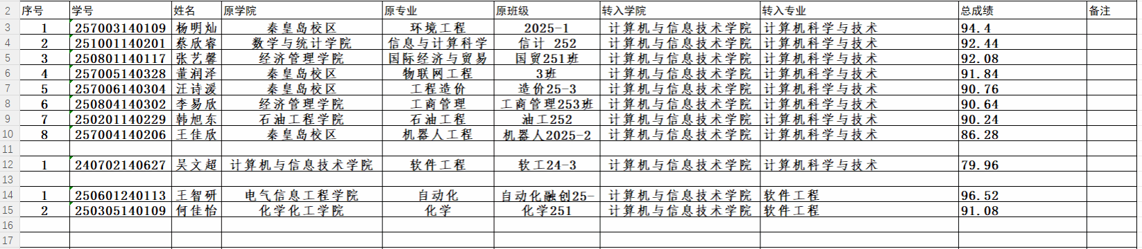 根据《tyc7111cc太阳成集团转专业与转学实施办法(修订)》(东油校发〔2024〕99号)文件规定,经学生本人申请,学院转专业工作小组审核及面试通过,符合转专业要求学生名单公示如下: