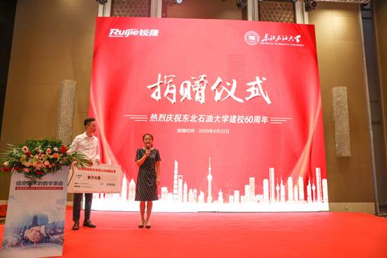 锐捷网络公司黑龙江总经理龚小东介绍了锐捷网络的创新发展和服务理念,表示会力争最大限度为学校发展助力。同时,为庆祝我校建校60周年,向学院捐赠3万元资金。