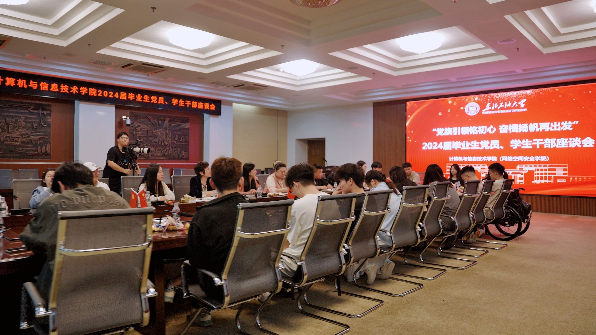 忆初心,践使命,话未来。为切实做好毕业生党员的教育、引导、服务工作,激励广大毕业生党员牢记党的教诲,传承红色基因、贡献青春力量,5月29日,在2024届毕业生即将告别母校之际,太阳成集团tyc7111在图书馆五楼会议室举行“党旗引领铭初心、奋楫扬帆再出发”2024届毕业生党员、学生干部座谈会。党委书记任艳秋、党委副书记胡畔,各学生党支部书记、辅导员等领导和老师参加了座谈会。