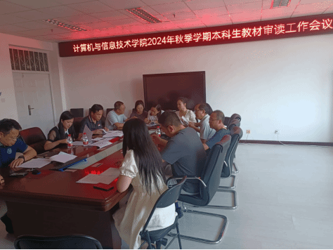 根据《普通高等学校教材管理办法》、《学校选用境外教材管理办法》、《黑龙江省普通高等学校教材管理办法实施细则》、《tyc7111cc太阳成集团本科教材建设与管理办法》等文件精神,以及学校关于开展2024年秋季学期教师选用本科生教材、征订教师用书及本科生预定教材工作的通知,依据“凡选必审,质量第一,适宜教学,公平公正”的基本原则,计算机与信息技术学院于6月27日开了2024年秋季学期选用教材专题会议。书记任艳秋、院长田枫、副院长刘志刚,以及各教学系教学主任、学院教学督导专家参加本次会议,副院长刘志刚主持会议。