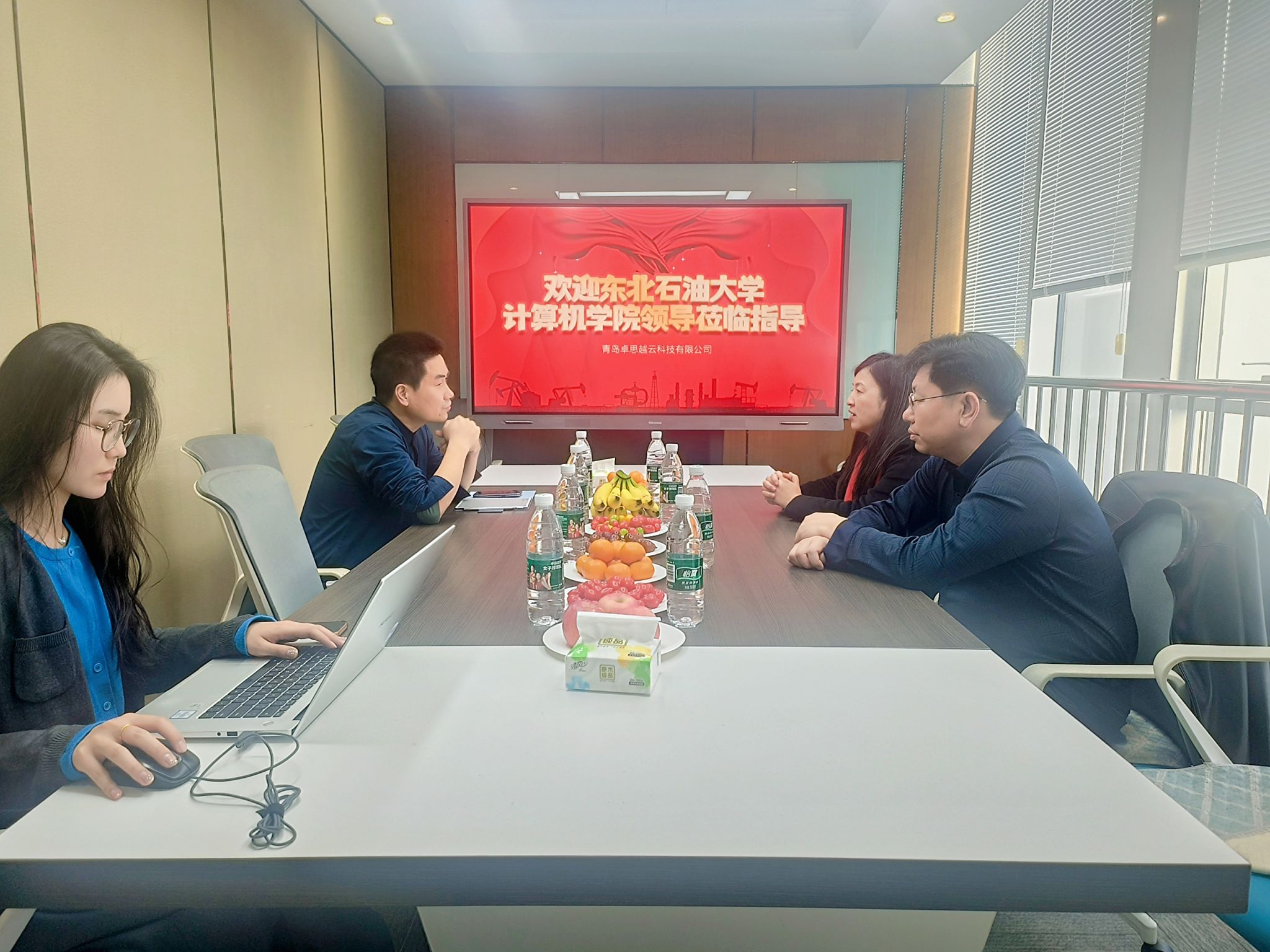 11月28日下午,青岛卓思越信息技术股份有限公司董事长、我校校友李腾飞热情接待任艳秋一行。他详细介绍了公司的历史背景、核心业务以及未来的战略规划与人才需求。任艳秋、张强详细介绍了学院基本情况和未来发展定位。就人才培养深度融合、毕业生就业现状、企业需求情况、相关课程衔接等进行了深入的座谈交流并就产教融合、毕业生就业工作达成合作意向。