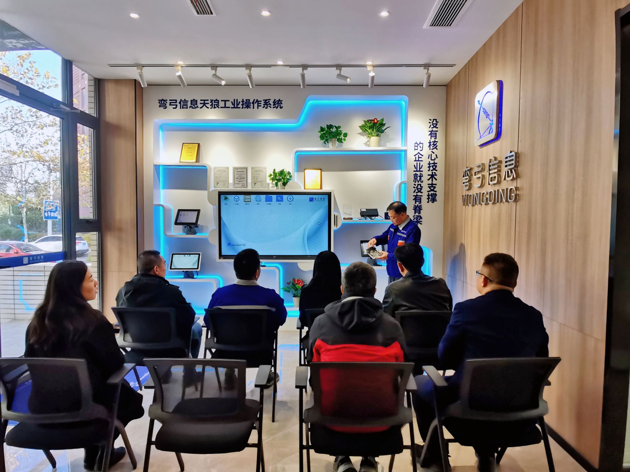11月29日上午,任艳秋一行走访青岛弯弓信息技术有限公司。在总经理、我院97级校友焦清国的陪同下,重点了解了弯弓天狼工业操作系统,参观了弯弓天狼工业操作系统、国产化工业控制计算机、工业组态设计平台、工业APP的研发进展与应用成果,实地见证了弯弓信息在工业控制领域的积累与突破、深刻感受到了公司的企业文化氛围以及系统化的人才培养体系。在座谈交流中,双方围绕校企联合人才培养,以就业促人才、以人才推企业的话题展开了深入探讨,就校企双向赋能高新技术产业发展和应用型人才培养项目的合作意向进行了细致交流。在共建人才培养基地、项目式课程体系培育,产业学院建设等方面达成共识。双方一致认为,后续将继续保持合作交流,高质量推进“产、学、研、用”一体化策略的落地实施,着力构建以“专业技术+职业素养+实际应用”为核心的综合人才培养体系。
