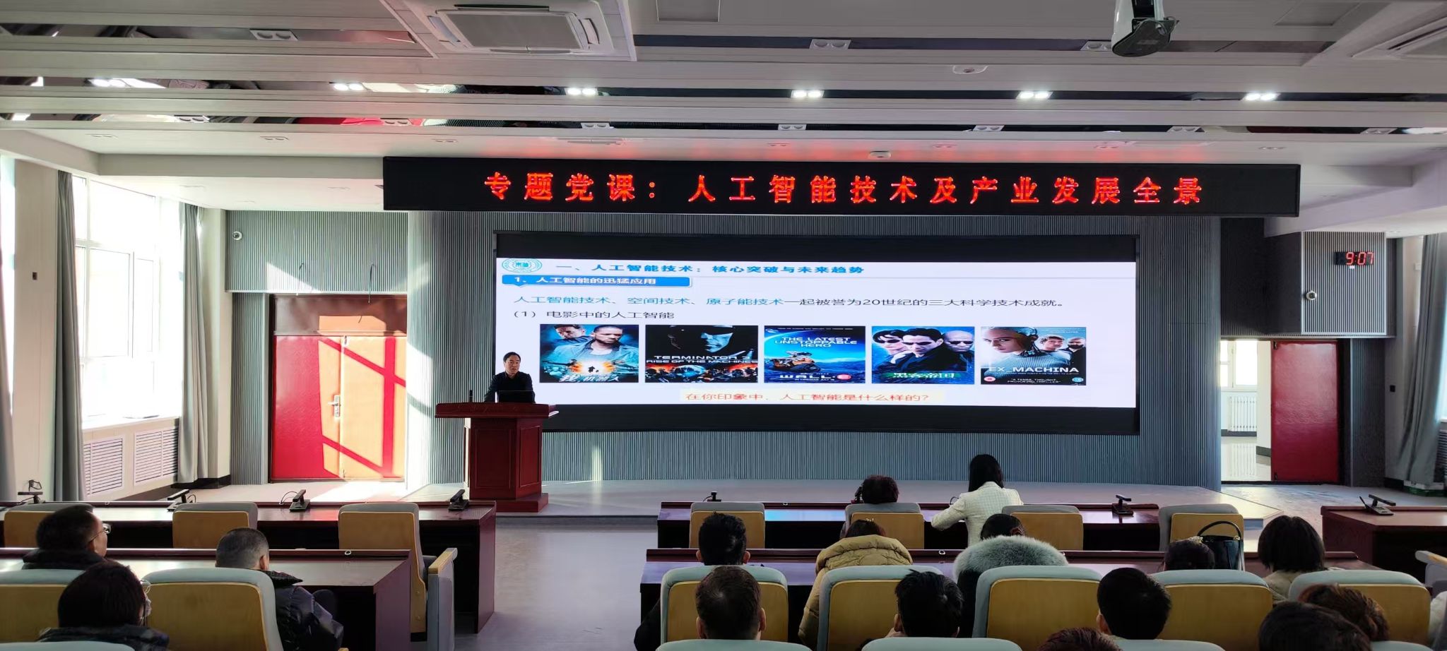 为扎实开展学院党建思政“一月一主题”教育活动,深化人工智能技术在教育领域的应用研究,提升计算机学院学生数字素养与技能,2025年2月28日,计算机学院院长田枫在第一教学楼211会议室组织为学院师生作“人工智能技术及产业发展全景”专题党课。党课由学院党委书记任艳秋主持。