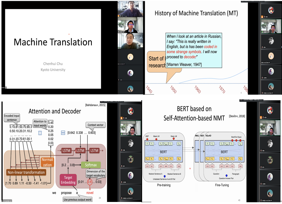 2022年12月19日,应学院邀请,京都大学褚晨翚教授为我院师生作了题为《机器翻译》的专题学术报告。本次报告由张强教授主持,田枫院长、学院教师与研究生共100余人次参与线上交流。本次报告为tyc7111cc太阳成集团“第五届国际学术交流周”系列讲座之一。