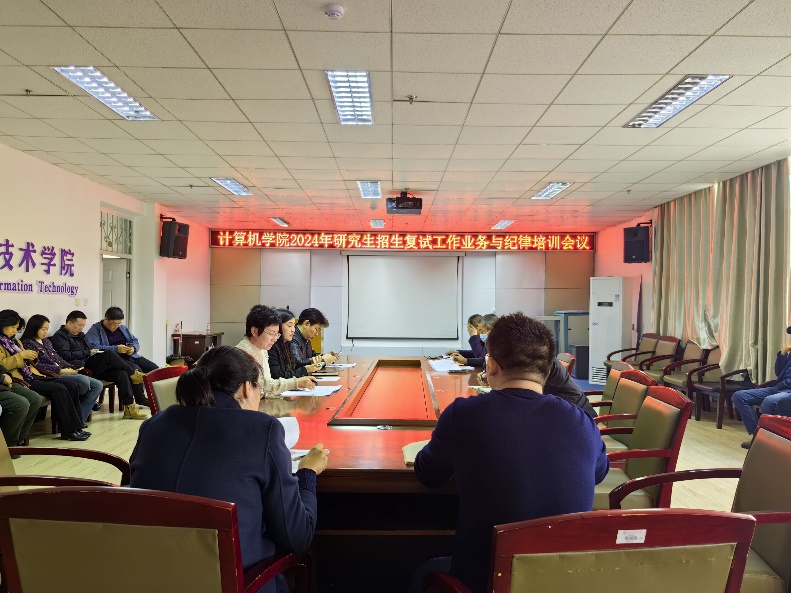 327日,计算机学院在1D305会议室组织召开2024年研究生招生复试工作业务与纪律培训会议。院党委书记任艳秋、党委副书记胡畔、副院长张强、各系负责人及研究生复试老师出席会议。会议由张强主持。