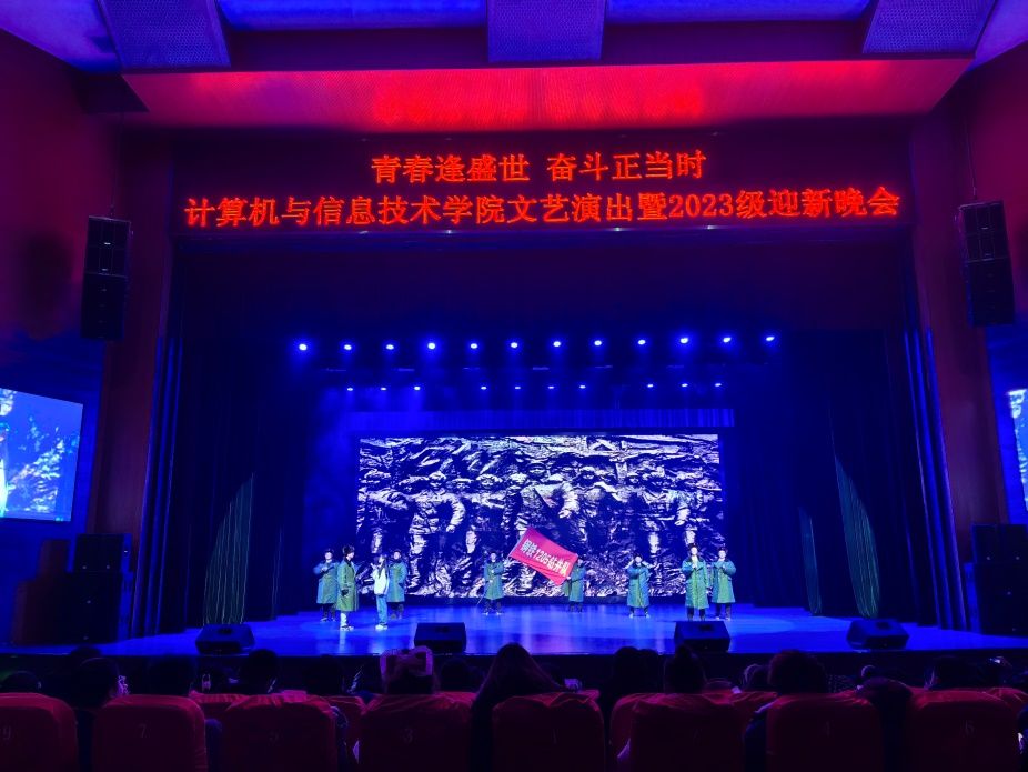 晚会在充满青春活力的《猪猪侠》开场舞中拉开序幕。歌曲、舞蹈、相声、小品等18个节目紧扣主题、形式多样、精彩纷呈。《大鱼》、《稻香》等歌曲婉转悠扬,为观众呈上听觉盛宴;《方言万花筒》、《诈诈呼呼》等相声小品表演不仅使观众连连捧腹,还具有深刻的教育意义;情景剧《英雄的雕像》和合唱《踏着铁人脚步走》,在铁人王进喜诞辰100周年之际,重温铁人事迹,讲好铁人故事,引导广大计算机学子身在大庆学铁人,激发学生的奋斗精神;气势磅礴的《万疆》合奏、婀娜多姿的《美丽的阿依汗》民舞表演,让观众感受到了我国传统文化的魅力,更是我院铸牢中华民族共同体意识的体现,将现场气氛推向了高潮。在全体演职人员共同带来的《我和我的祖国》的合唱声中,2023级迎新晚会圆满落下帷幕,悠扬的歌声回荡在每一位观众的耳中,令人热血沸腾。