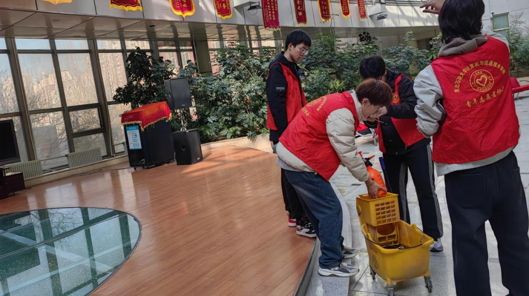 到达大庆市第二福利院后,同学们有序进入。在工作人员的引导下,志愿者们纷纷展开行动:有的志愿者帮助老人清洁整理卫生;有的志愿者对室内活动区进行了耐心细致的工作,为绿意盎然的树木花草擦拭叶片,喷洒药物;有的志愿者对院内的生活区进行了全面的清扫工作。他们不怕苦不怕累,团结合作,完成了各自的任务。