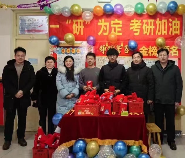 为帮助考研学子坚定备考信心、缓解备考压力、增强备考底气,12月20日,我院组织考研送祝福活动。学院党委书记任艳秋,院长田枫,党委副书记胡畔,副院长张强、刘志刚以及全体辅导员为备考学子送去精心准备的考研礼包和最诚挚的祝福。