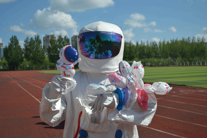 还有的志愿者化身“宇航员”进行热场,将提前准备好的气球娃娃送给了在场的孩子们,收获了孩子们的欢声笑语。