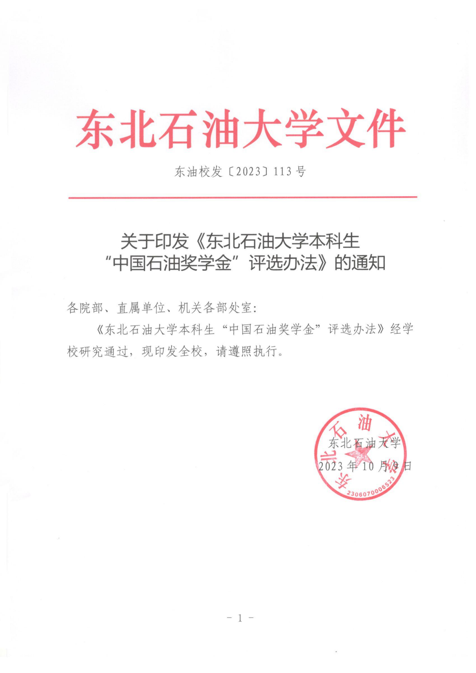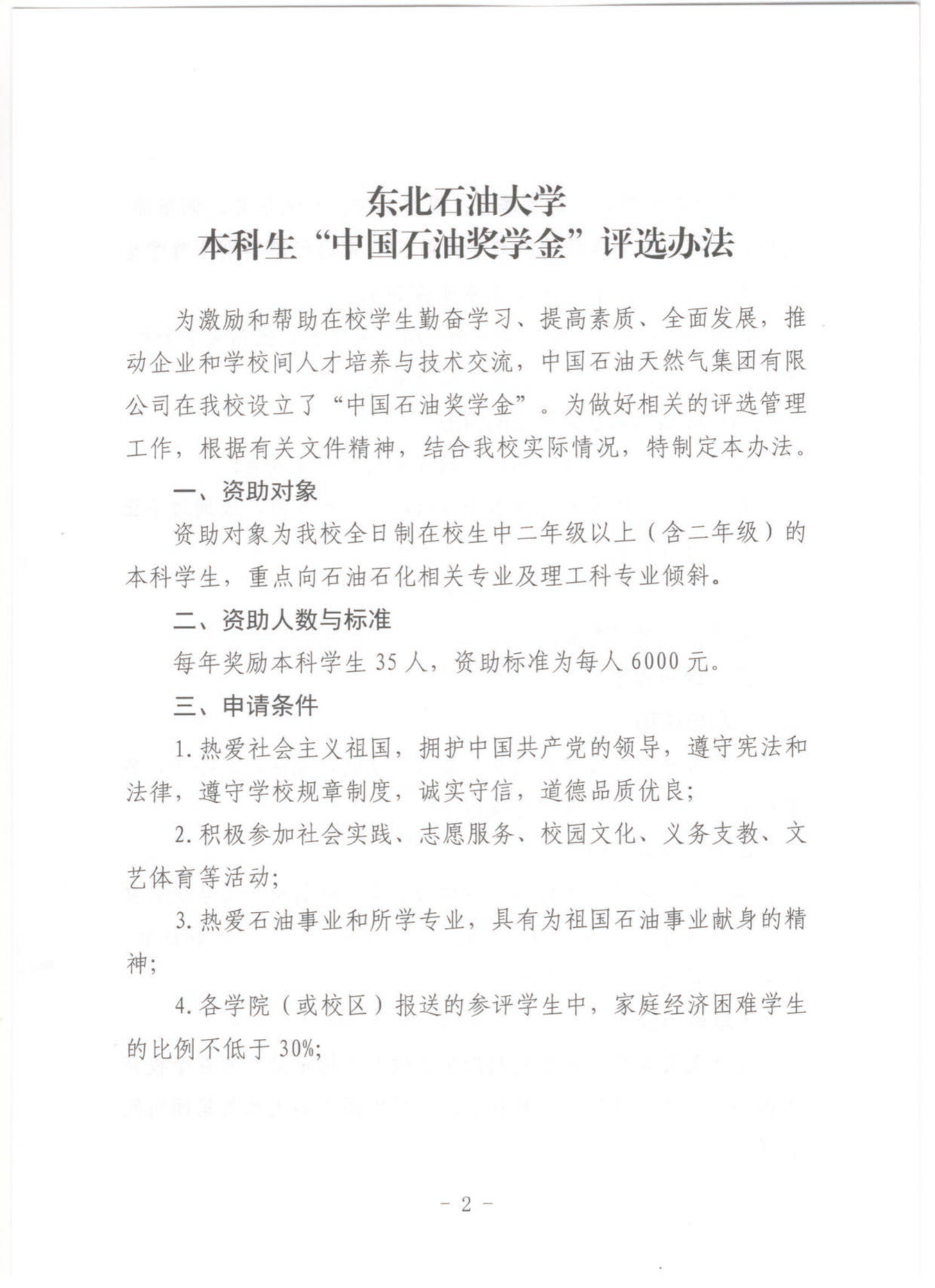 关于印发《tyc7111cc太阳成集团本科生“中国石油奖学金”评选办法》的通知