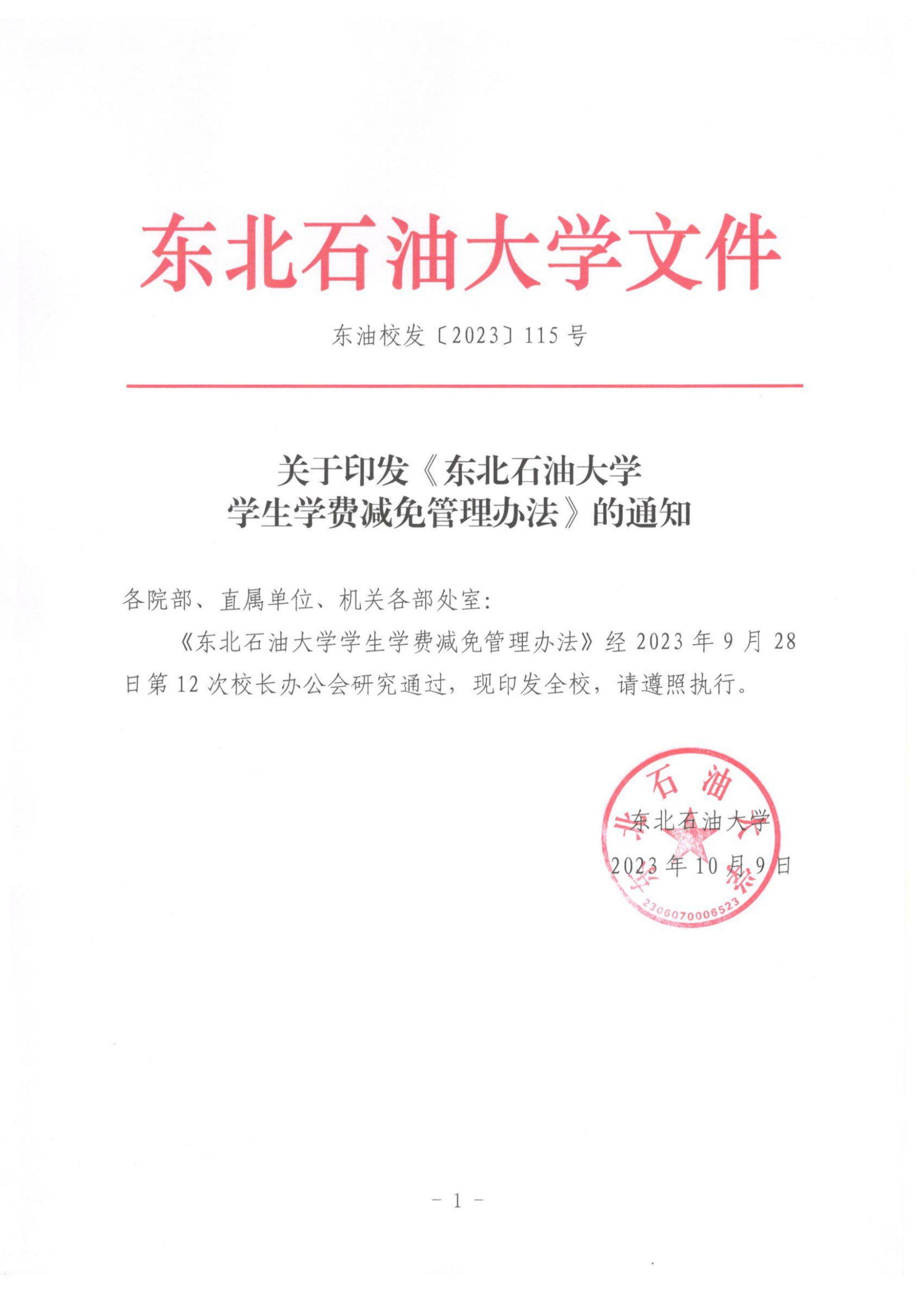 关于印发《tyc7111cc太阳成集团学生学费减免管理办法》的通知