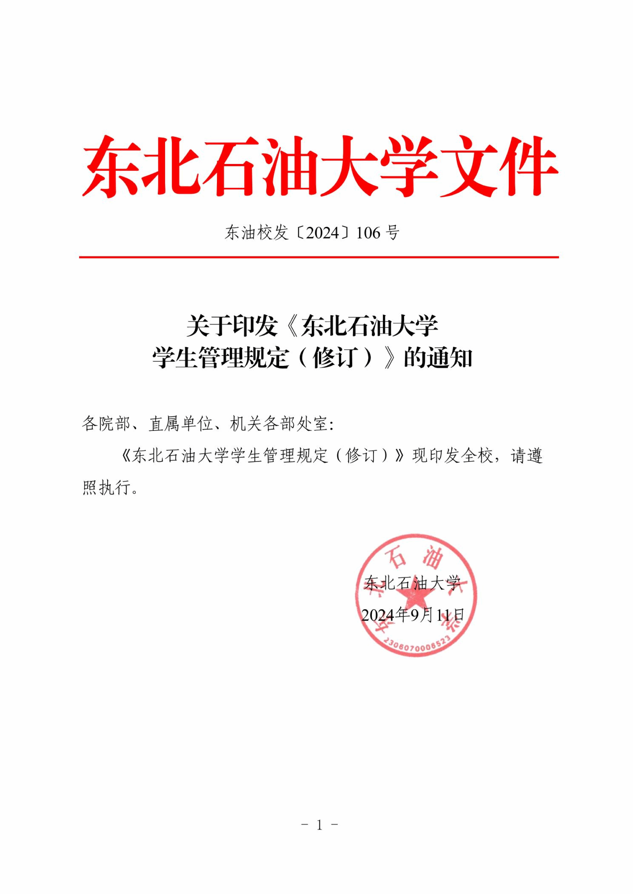 关于印发《tyc7111cc太阳成集团学生管理规定(修订)》的通知