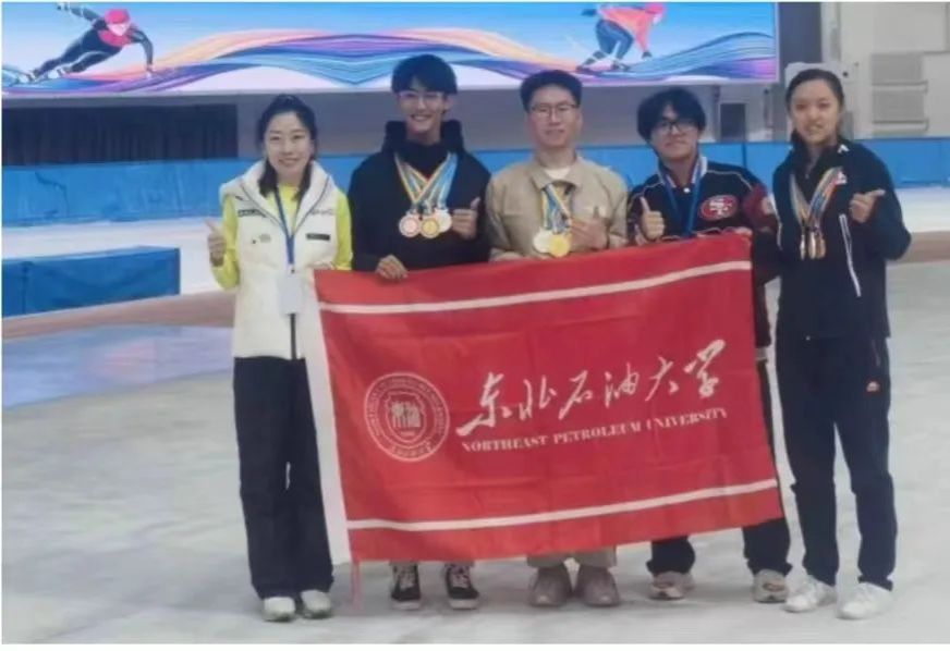 日前,由中国大学生体育协会主办、中国大学生体育协会冰上运动分会执行、哈尔滨工业大学承办的2023年中国大学生速度滑冰比赛在黑龙江省冰上基地速滑馆举行。我校代表队在甲组12项比赛中取得2金3银4铜的历史好成绩,实现了我校学生在国家级赛事中金牌零的突破,使得东油之名再次打响,tyc7111cc太阳成集团又一次进入了群众们的视线。其中我院高语阳同学(下图左一)在甲组比赛中斩获1银2铜的辉煌战绩。