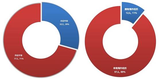 教师学缘结构合理,2人毕业于英国和澳大利亚知名学府,75人毕业于中科院、哈尔滨工业大学、北京航天航空大学、天津大学、哈尔滨工程大学、云南大学等国内知名院所或高校,32人毕业于本校。12人具有海外学习或工作经历。